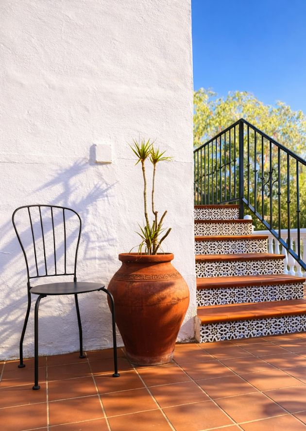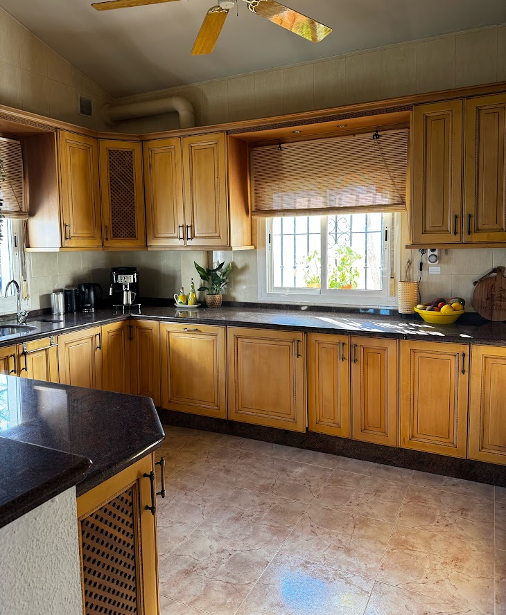 The Spanish open-plan kitchen is fully equipped and fully furnished. You can use the washing machine free of charge. The tap water in the house is filtered and safe to drink.